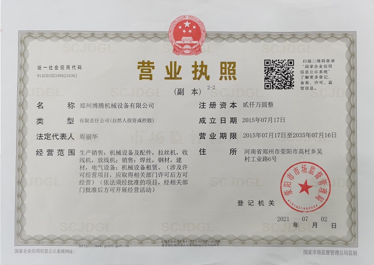 鄭州博騰機械設備有限公司是一家從事金屬制品拉拔設備、電控設備及其輔機的研發(fā)、設計及制造于一體的綜合型企業(yè),我公司擁有一批經(jīng)驗豐富的專業(yè)技術(shù)人才和優(yōu)秀的生產(chǎn)管理人才,公司生產(chǎn)設備齊全,檢測手段完善。